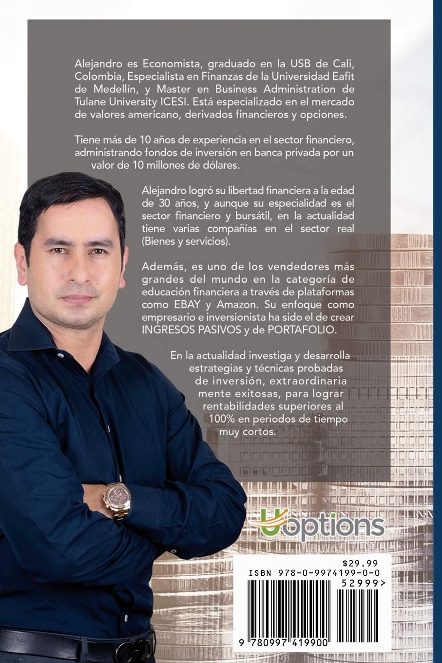 El libro te proporciona las herramientas concretas y específicas para adentrarte en el mundo financiero y multiplicar tus ganancias. Aprenderás estrategias exclusivas utilizadas por una minoría para lograr el éxito. Conviértete en parte de ese selecto grupo y toma el control de tus inversiones. Publicado por AM Educación y Servicios en agosto de 2016, este libro en español cuenta con 143 páginas y un ISBN-13: 978-0997419900.